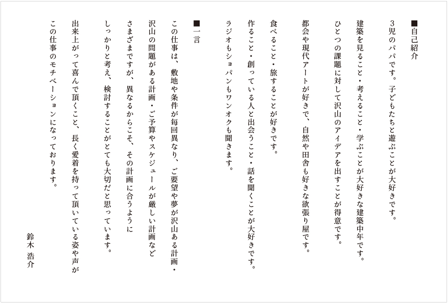| 鈴木浩介建築設計事務所 一級建築士事務所 |